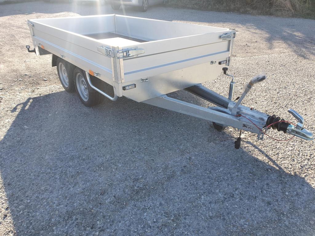 2 essieux 1000 kg Knott, freinés par inertie, à suspension par torsions caoutchouc.